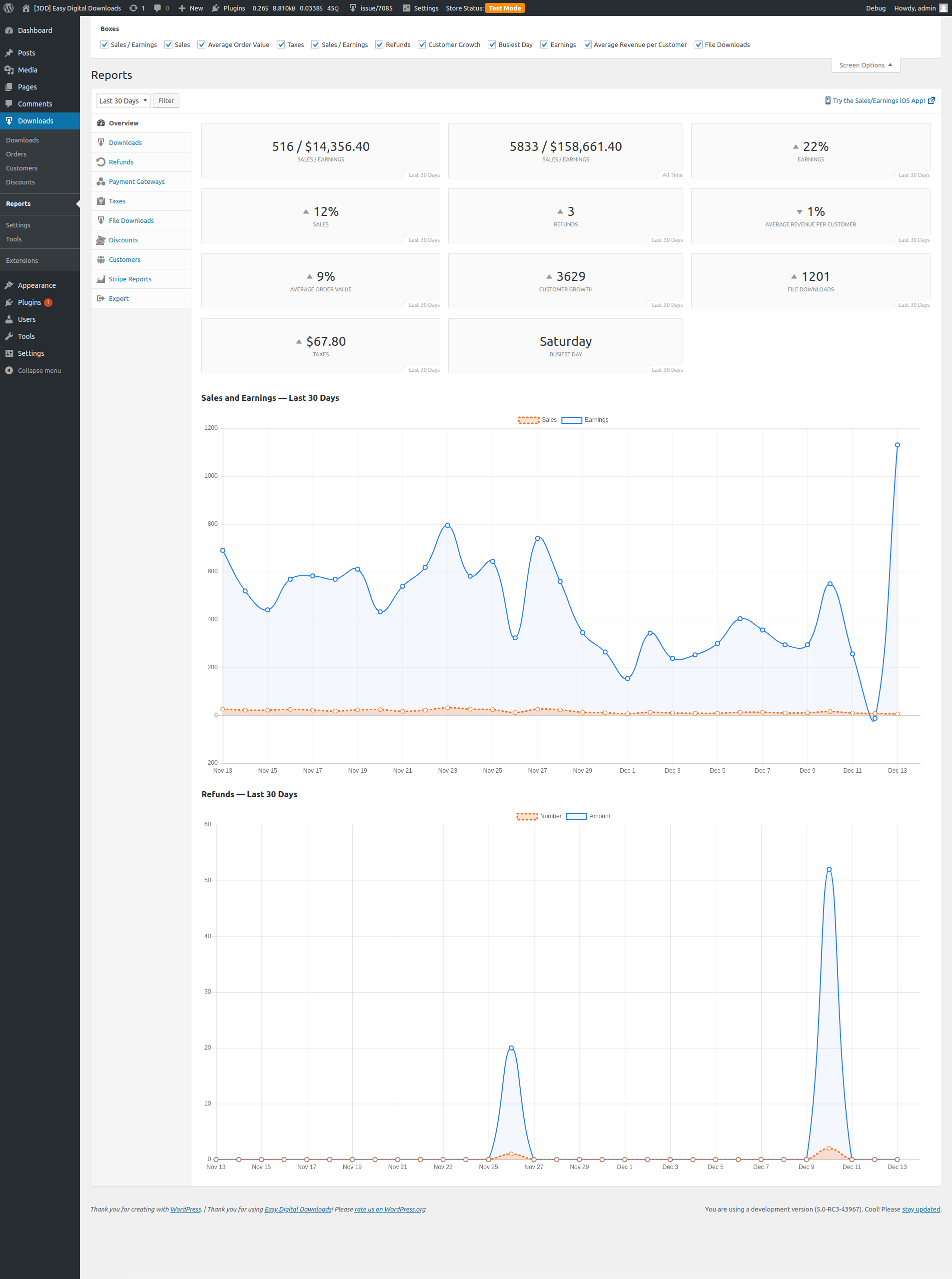 In one of our earlier updates we discussed the new Reports API. We’ve made some great progress on these APIs and have introduced a brand new Reports View for Easy Digital Downloads. It includes many of the same features you enjoyed before, with the added benefit of better filters, more in-depth reports for products and categories, improved gateway reports, relative data, and a new concept called ‘Tiles’.
