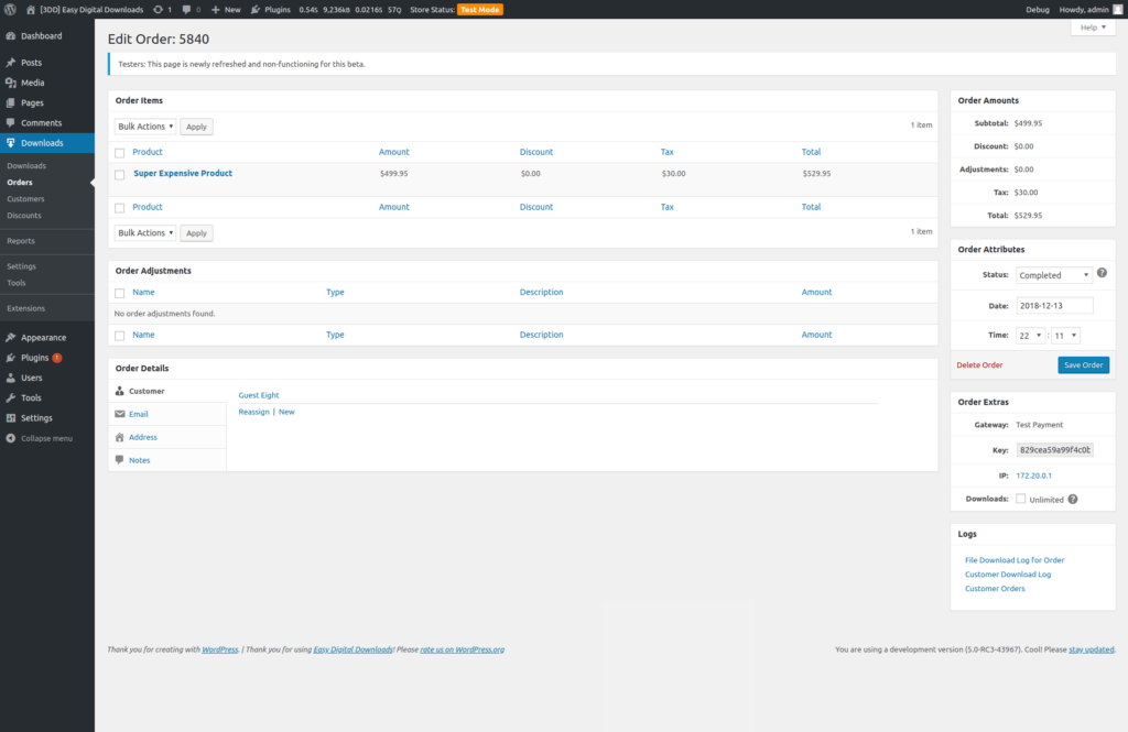 It’s been a while since we’ve given you an update on the progress of Easy Digital Downloads 3.0. While this update is taking longer than we expected, stability, performance, and backwards compatibility are driving our focus while in the final phases of development. We are down to the last remaining issues before we ship a beta, and felt it was time to give you a sneak peek of what’s to come. In the past we’ve talked about the major focuses and possible breaking changes that we needed to make to move forward.
