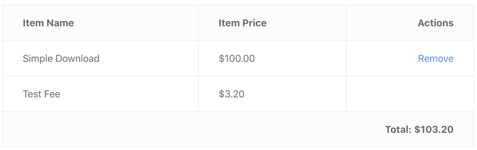 Once you have a gateway fee set up, it automatically takes effect on the checkout page. Below is the example of a Test Payment fee of 2.9% plus 30 cents per transaction on a $100.00 purchase.