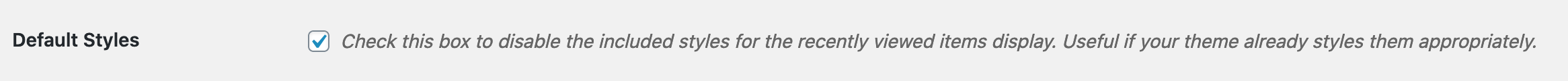 The extension includes some basic styles for making sure the recently viewed items are displayed with adequate spacing, etc, but this may not look exactly the way you want on all themes. In these cases, you can disable the built-in styles and let your theme style them or provide your own custom styles. Check the Default Styles box to disable the extension’s styles.