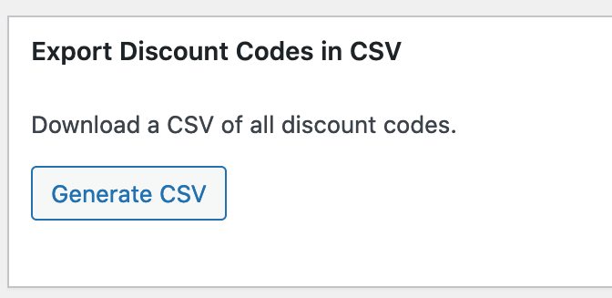 If needed, you can navigate to Downloads → Reports → Export. Then click “Generate CSV” in the Export Discount Codes in CSV section.