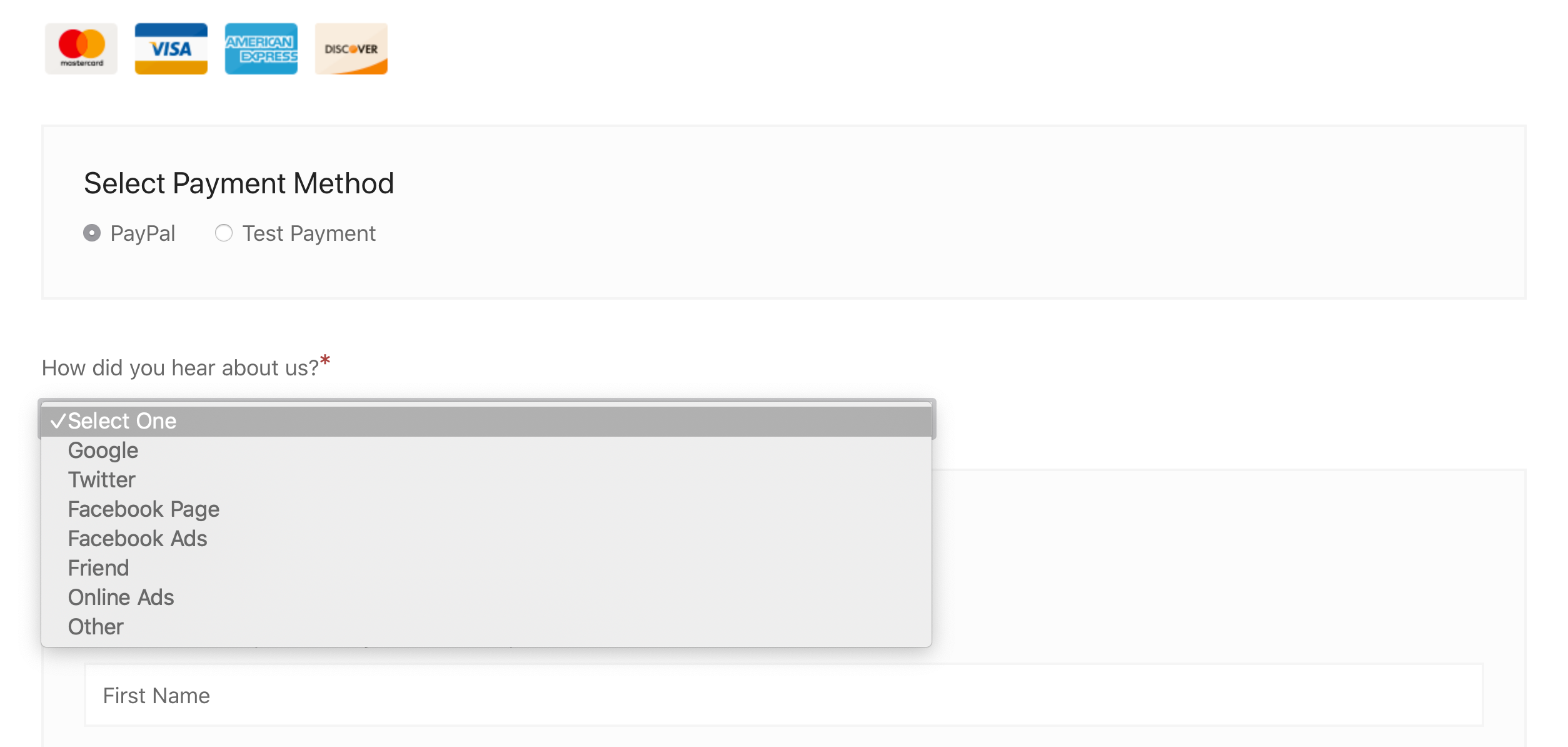 Survey Title: This is the title that will appear above the dropdown list. Example: How did you hear about us?