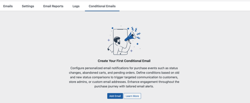 Once the Conditional Emails extension is installed and activated, a new section will be added to the Downloads > Emails > Conditional Emails. Prior to any configuration, the Conditional Emails section will look like this: