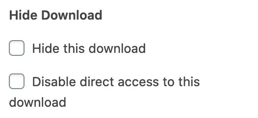 Hide this download – This hides the download from the Downloads archive page which is typically located at http://your-site.com/downloads