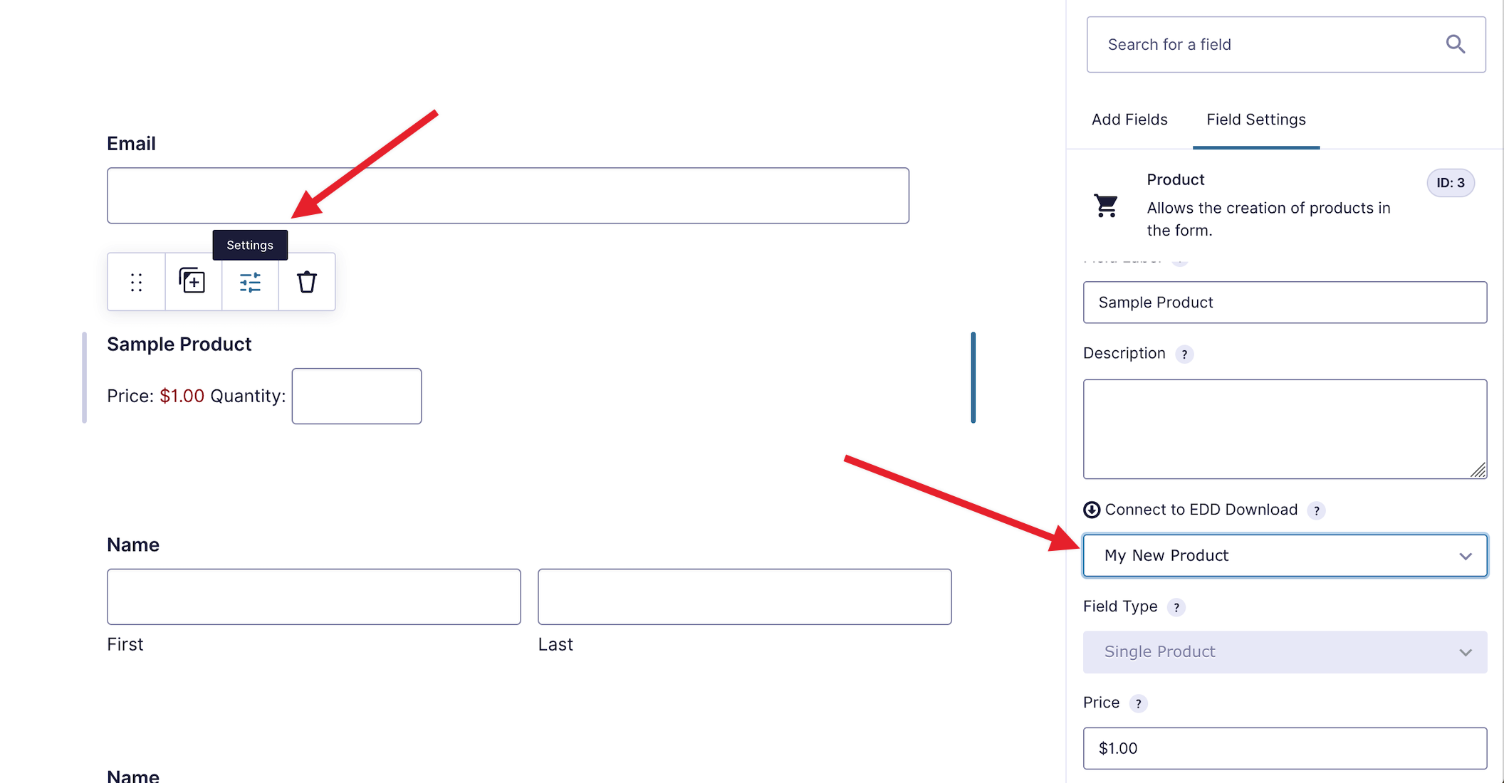 In Version 2.0, if your form has multiple fields of those types, you will see a new “EDD Fields” form setting.