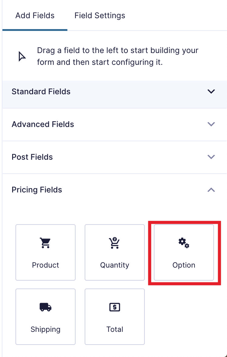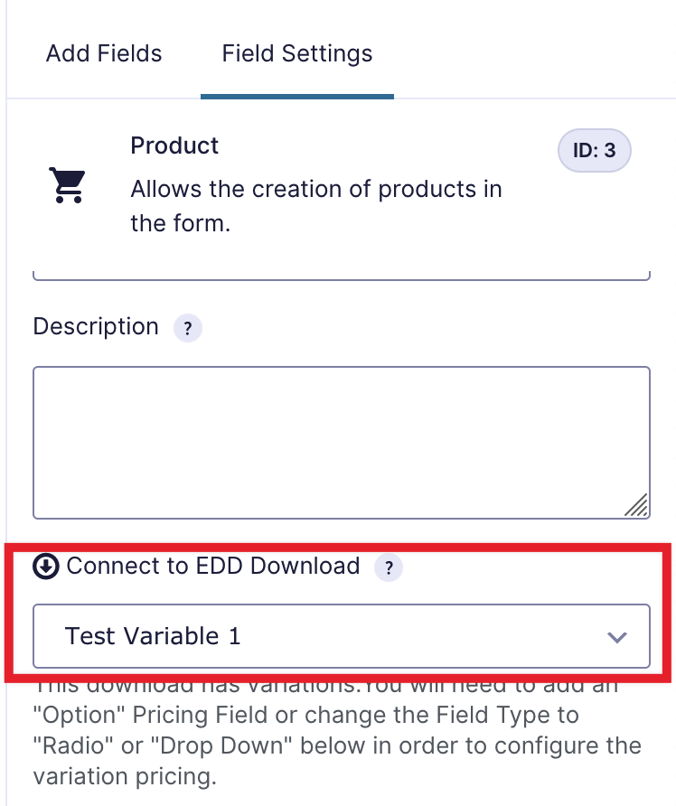 When connecting a Download with Variable Pricing, you’ll also need to add an “Option” field in the form.