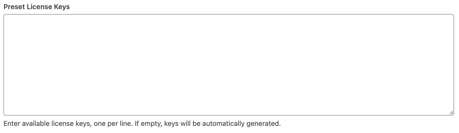 The Preset License Keys textarea will allow you to list your own available license keys, one per line.