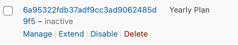 You can Manage, Extend (renew), Disable, or Delete a license at anytime by hovering over the license and clicking the appropriate link.
