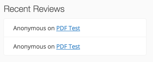 This widget renders recent reviews. You may provide a number to limit how many reviews display. Admin screenshot: