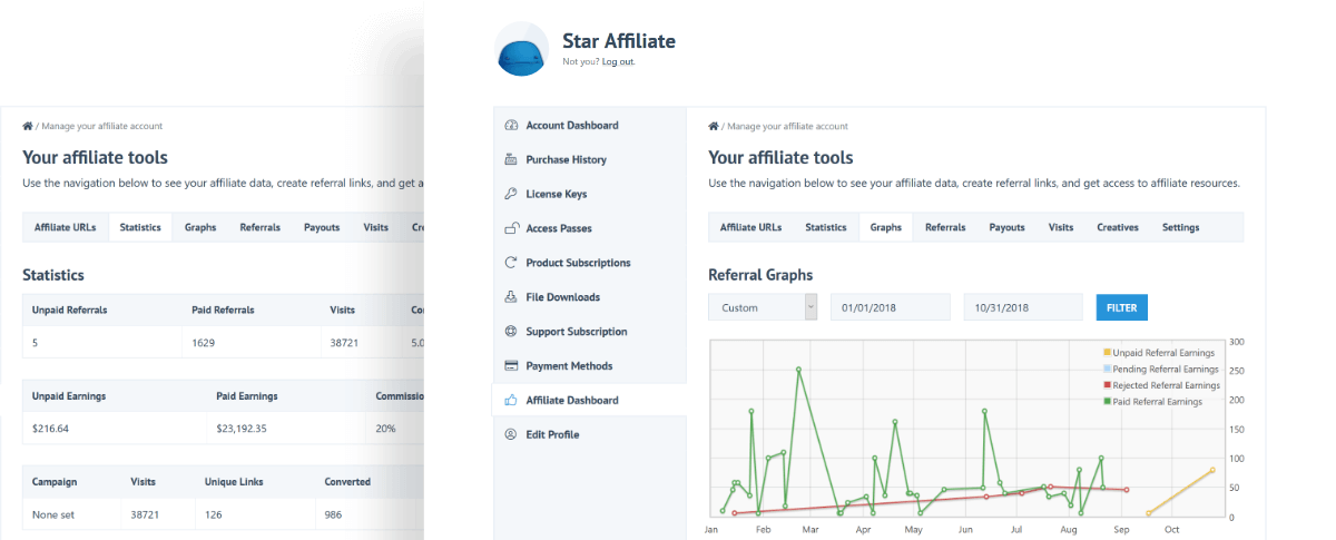 Fine-tune your marketing strategy based on real data found in your affiliate area. Referral data, conversion statistics, and earnings reports are always up-to-date and easily accessible.