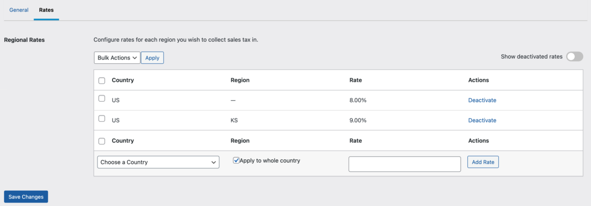 This section lets you add tax rates for specific countries and/or states/provinces in those countries.