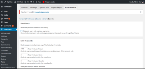 Fraud Monitor is an extension that adds robust monitoring to your Easy Digital Downloads store and works for you to automatically detect possibly fraudulent purchases, allowing you to rest easy and focus on growing your business instead of fighting fraud.