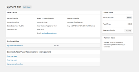 - See which product/post/page was shared on each purchase from EDD’s view order details page