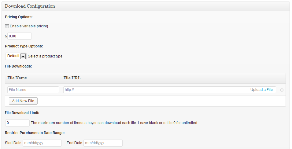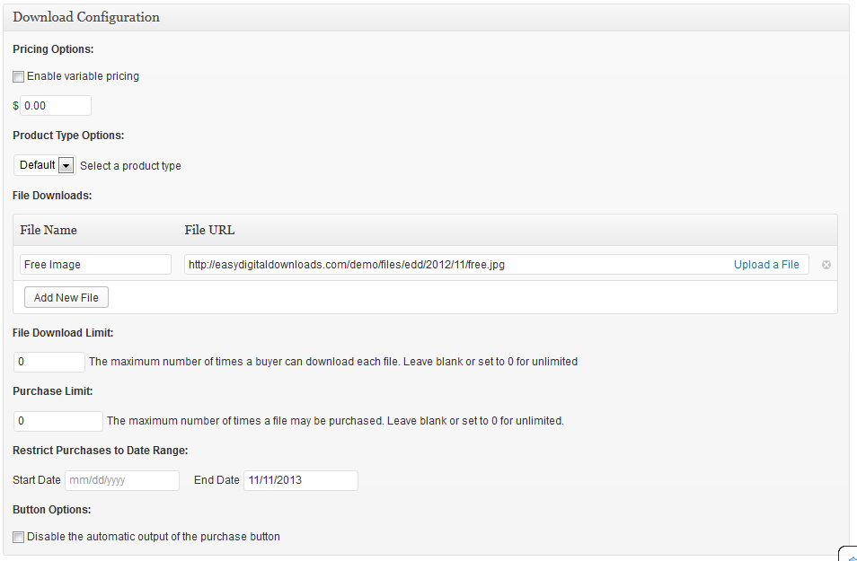 Purchase Limits also allows you to limit the dates Downloads are available to be purchased by setting a start and/or end date.