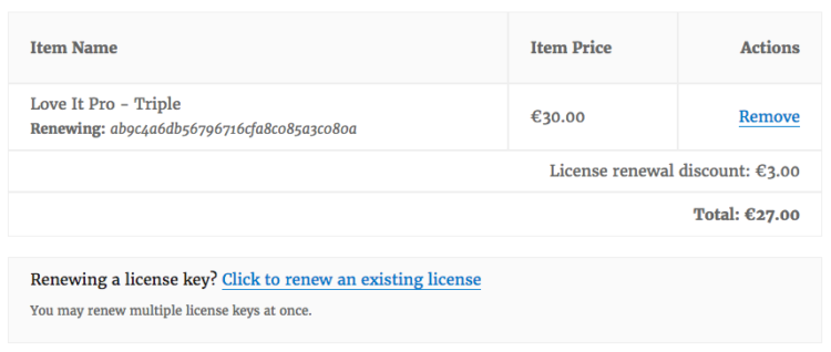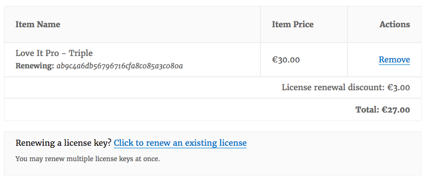 Renewal discounts can be configured by site administrators to help incentivize customers to renew their license keys.