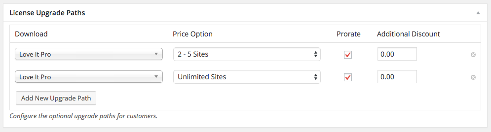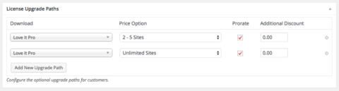 Upgrade purchases can be prorated based on the customer’s existing purchase and can even include additional discounts. Upgrade paths can be configured to allow customers to upgrade between license levels of a single product or even to entirely different products.