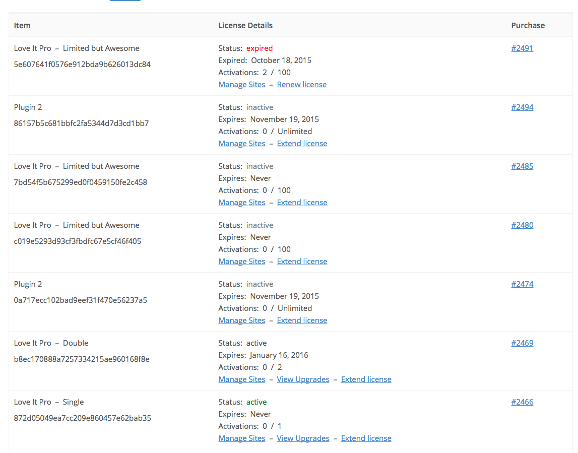 Software Licensing has been built specifically with WordPress theme and plugin developers in mind, but can be used for any kind of software licensing through the included API. Included with the add-on are complete samples that illustrate how to implement license activation and checking in your theme or plugin, and how to setup automatic upgrades for your theme or plugin that are delivered through the licensing system.