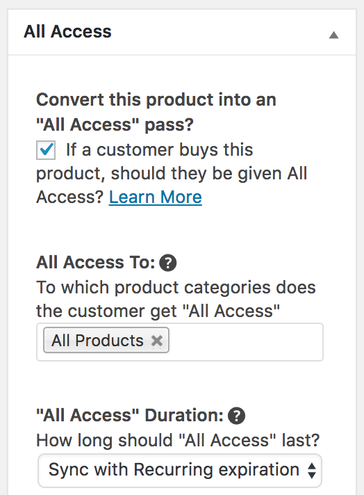 3. Edit your All Access Pass products and make sure the “Enable Commissions” option is checked. Then make sure the Commission “Type” is set to “All Access calculates commissions”. That’s it!