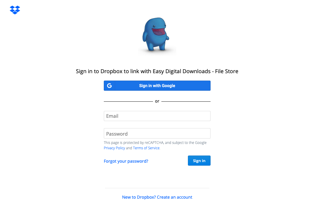 A new window / tab will open on a Dropbox page that will prompt you to log in and authorize Easy Digital Downloads – File Store to access the files and folders in your Dropbox account.