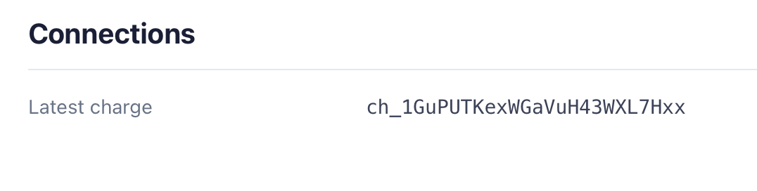 4. Now, we need the Transaction ID. In your Stripe account, click on Payments (or click the customer’s email address in the Subscription details) on the left sidebar. Find the first payment which started the customer’s subscription. Click on it, and scroll down to the Connections section and copy the ID, beginning with “ch_”: