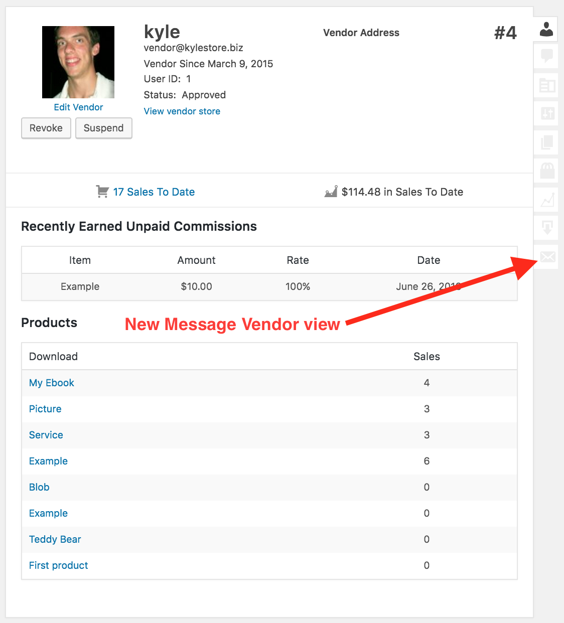 Now, when viewing a vendor in the dashboard, a new view for messaging the vendor directly is included.