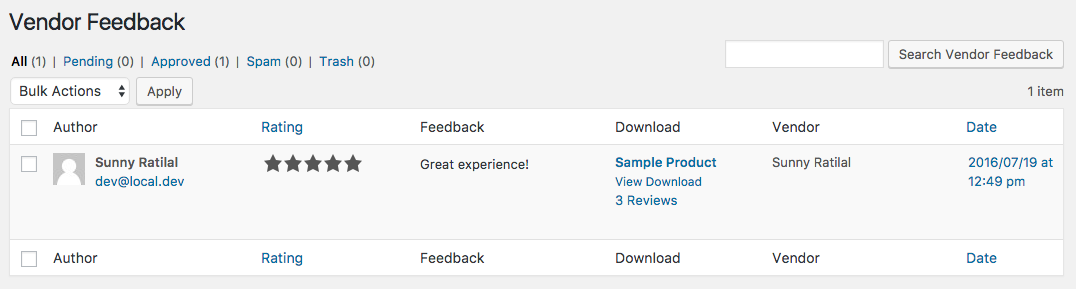 After making a purchase, if any of the products in that purchase were created by a FES vendor, customers can leave feedback for them. This allows store administrators and vendors to easily see what they’ve done well and what could be better.