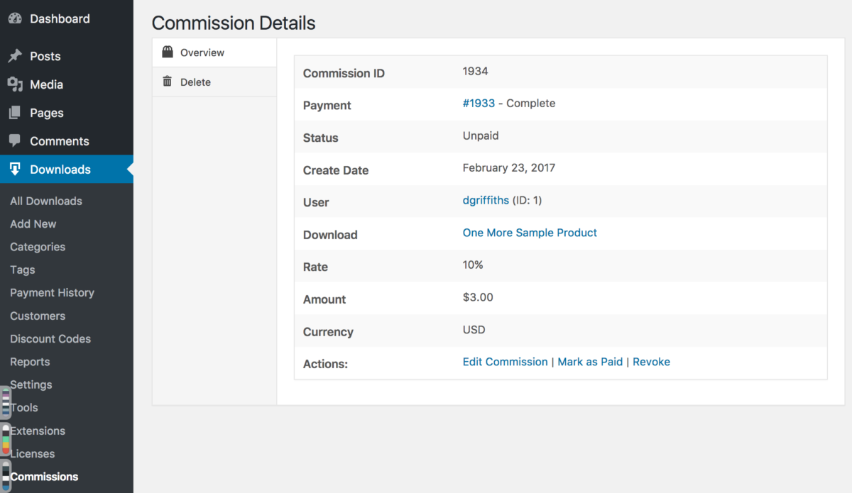 • [edd_commissions_overview] – displays an overview of the sales and earnings for the currently logged-in user