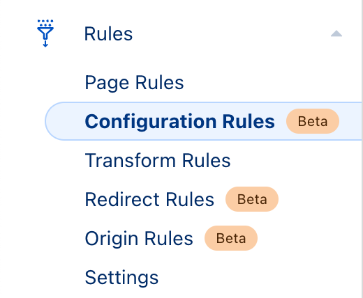 When enabled the Rocket Loader feature can cause issues with EDD’s checkout as it can cause duplicate payments to be created at the Gateway due to it duplicating the click to process a purchase. To ensure your checkout is not affected by this undesired result, you should disable Rocket Loader on the checkout page using a Configuration Rule. To enable a Configuration Rule, in the menu on the left of your Cloudflare domain settings, choose Rules > Configuration Rules