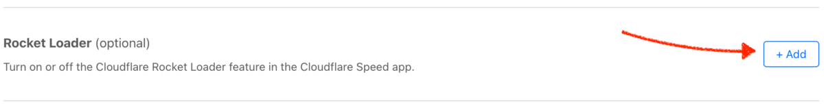 Scroll down and click ‘+ Add’ for Rocket Loader, and ensure that it is ‘Off’
