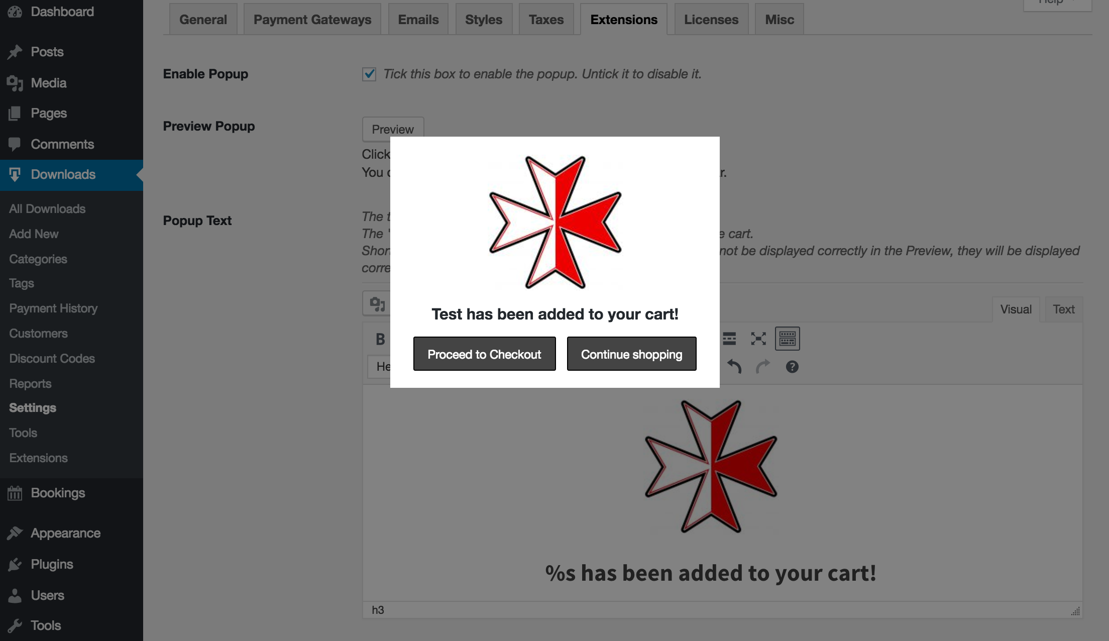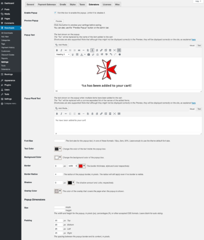 The extension includes options to customize practically every aspect of the popup. You can add any text and images within the popup through the WYSIWYG editor, both for when the customer has single or multiple items in their cart.