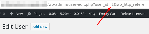 Then click on the username to edit the user. The URL will contain the ID of that user.