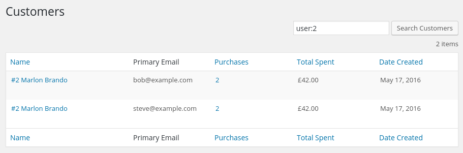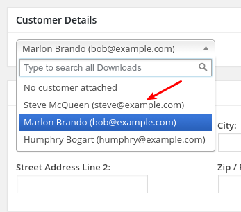 Take the user ID from the above search and go to Downloads → Customers. In the top right is a search box. Search for the user ID with a search string like this: