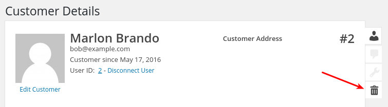 Repeat this until there aren’t any more purchase records. Once the Customer has no purchase records then you can click the trash can in the top right of the Customer record and delete the user.