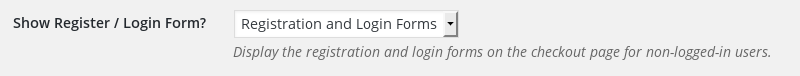 When the above option is set to show both the login for and the registration form then checkout will look like the one below. Note the Login link at the top and the registration form at the bottom.