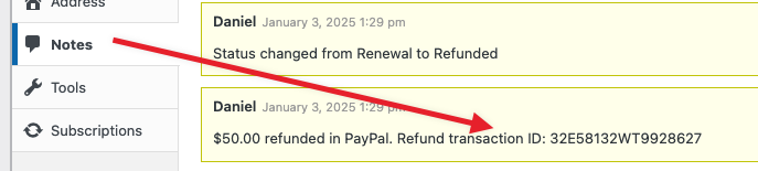 Cancel Subscription ID #11 (Simple Download) – This box will be visible if there is a subscription tied to that specific Order. In this case, I want to refund the customer but also cancel his Subscription that was created for the Download at the time of the purchase.