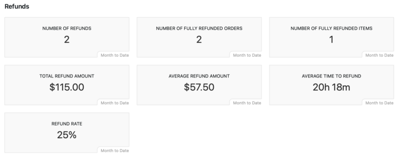 The Overview section provides an overview of your stores sales and earnings, average order value, new customers and amount refunded.