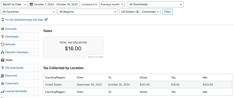 - Taxed Orders: Download a CSV of all orders, taxed by Country and/or Region.