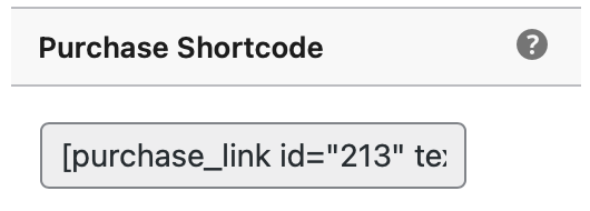Full shortcode example: [purchase_link id="213" text="Purchase" style="button" color="blue"]