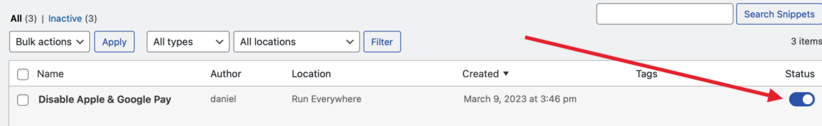 Upon activation, the plugin will add a new menu item labeled Code Snippets to your WordPress admin bar. Clicking on it will show you a list of all the custom code snippets you have saved on your site.