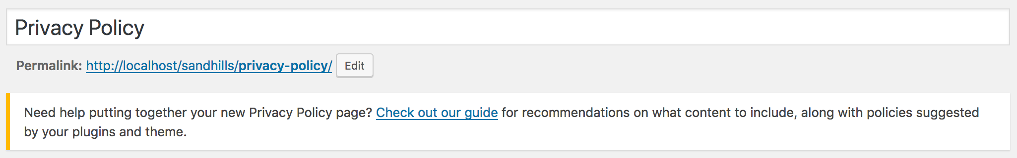 Once you have created this page and set it as your WordPress Privacy Page, you will notice a message on the page edit screen that links you to a guide providing of tips and suggested text for your Privacy Page.