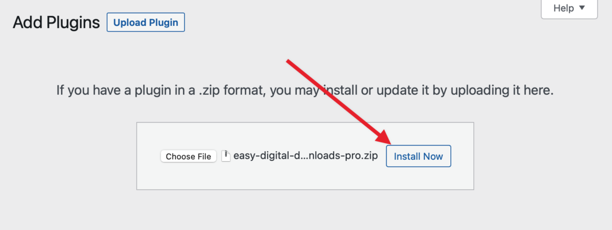 From here, you’ll see the option to upload the plugin. Click on the Choose File button and select the Easy Digital Downloads zip file you just downloaded.