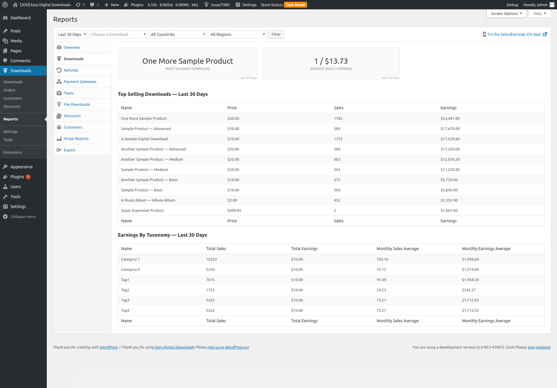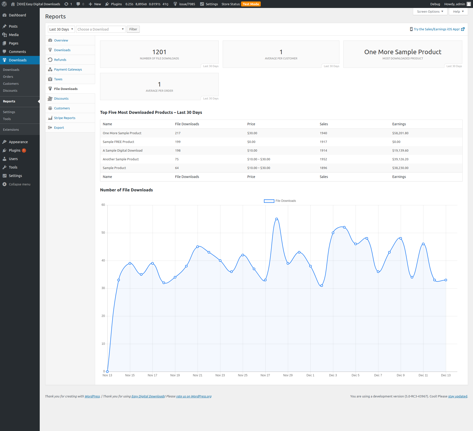 In one of our earlier updates we discussed the new Reports API. We’ve made some great progress on these APIs and have introduced a brand new Reports View for Easy Digital Downloads. It includes many of the same features you enjoyed before, with the added benefit of better filters, more in-depth reports for products and categories, improved gateway reports, relative data, and a new concept called ‘Tiles’.