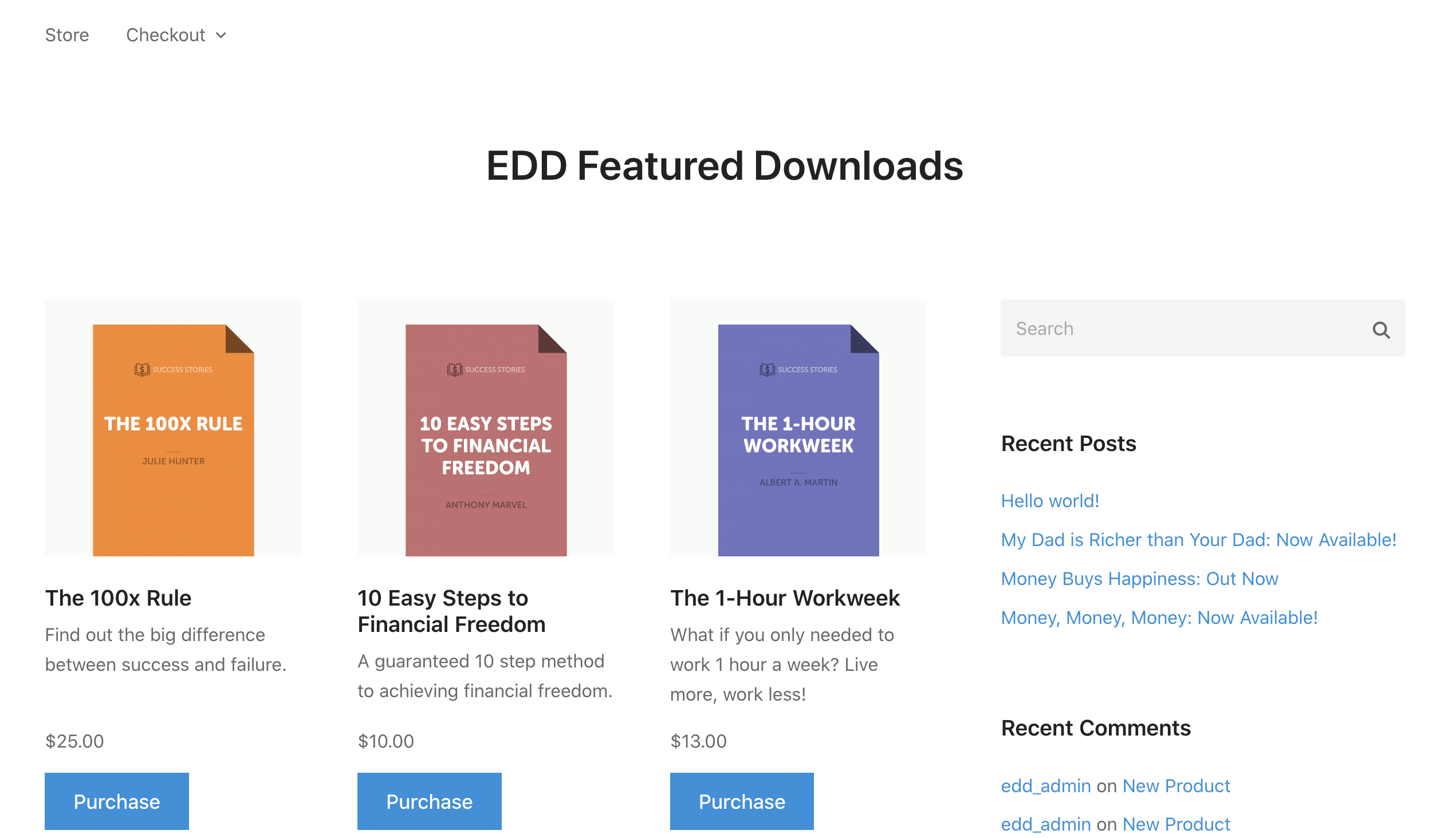 Once in place, the featured downloads will be displayed on the page you’ve added either the shortcode or template tag to.