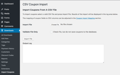 This extension allows you to import coupons into your store in bulk via CSV. Simply setup your CSV file with all of the discounts you wish to import, upload the file, and click Import.
