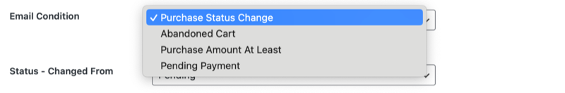 Note: Options available in “Status Changed From” and “Status Changed To” can change based on what payment gateways are active.