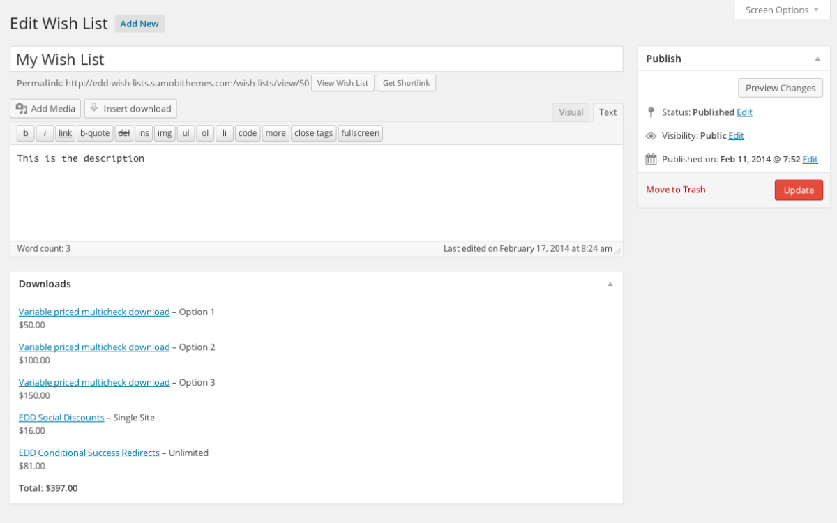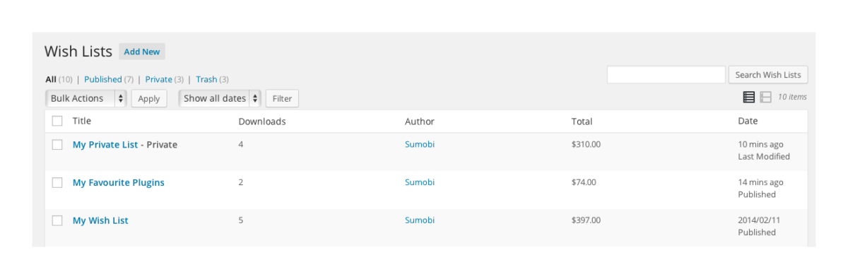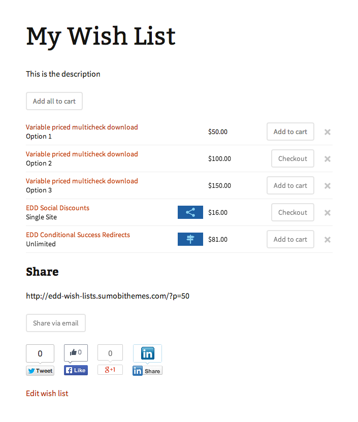 - Extremely flexible layout. Use any page on your website to display a user’s wish lists, display individual wish lists, to edit wish lists, or to create new wish lists