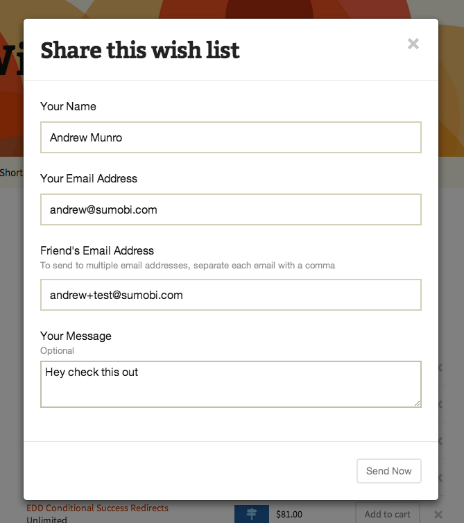 Give your customers the ability to save and share their favorite products on your site with the Wish Lists extension. Increase your sales by giving potential buyers a great user experience – a pressure-free way to save products to review later or share with their friends and family. Check out the live demo below, and scroll down for more information on how Wish Lists will help grow your site traffic and customer base.