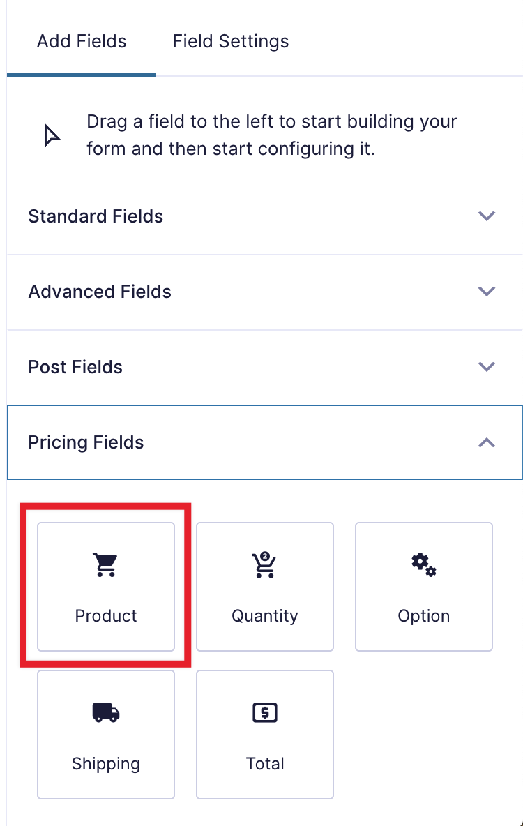 This can be done by hovering over the product field and clicking the “Settings” button.