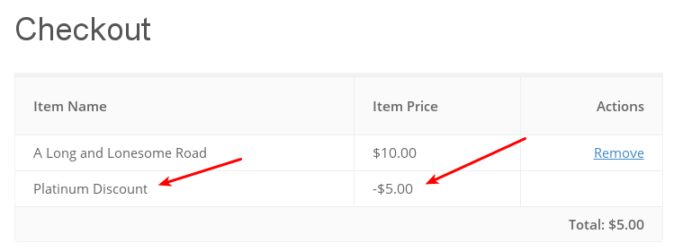Here’s a screenshot of a checkout page for a Platinum Member with a 50% discount for all Platinum Members.