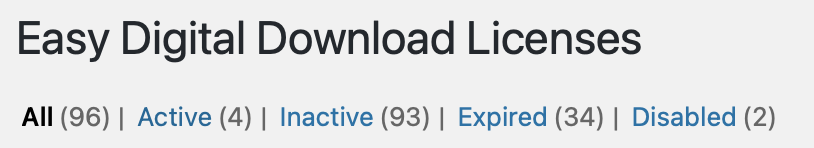 There are four filters at the top of the page, just below the page title, that let you view license keys by status.